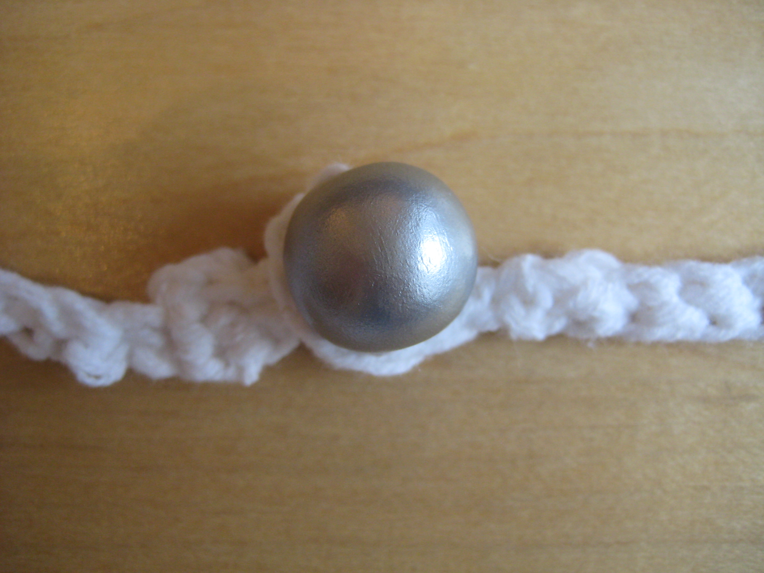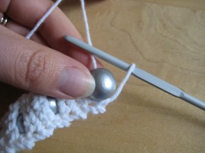 Thread the beads onto the cotton and chain 10 (or however many fits your size of bead) and join with a slip stitch to make a ring fastening.