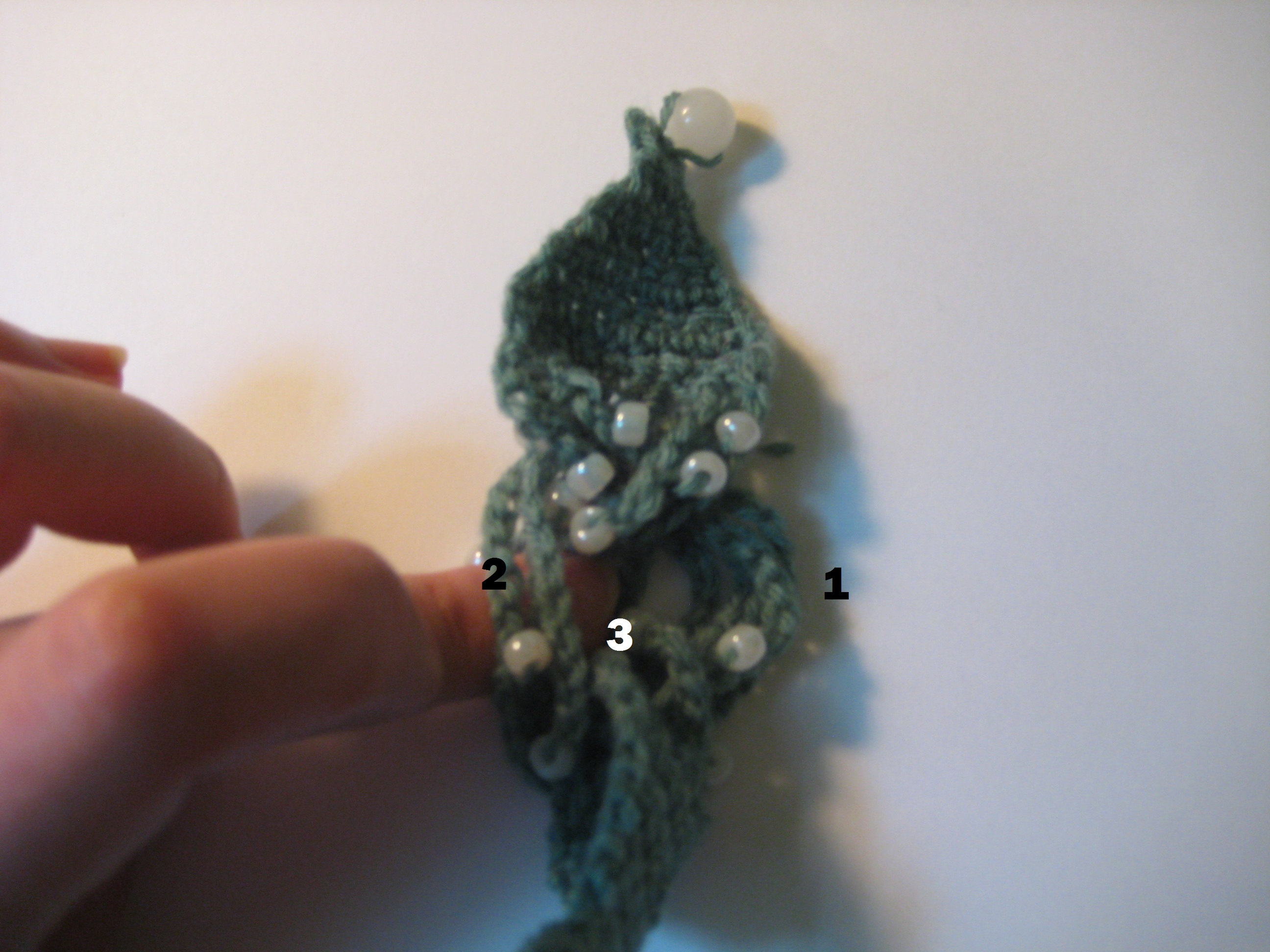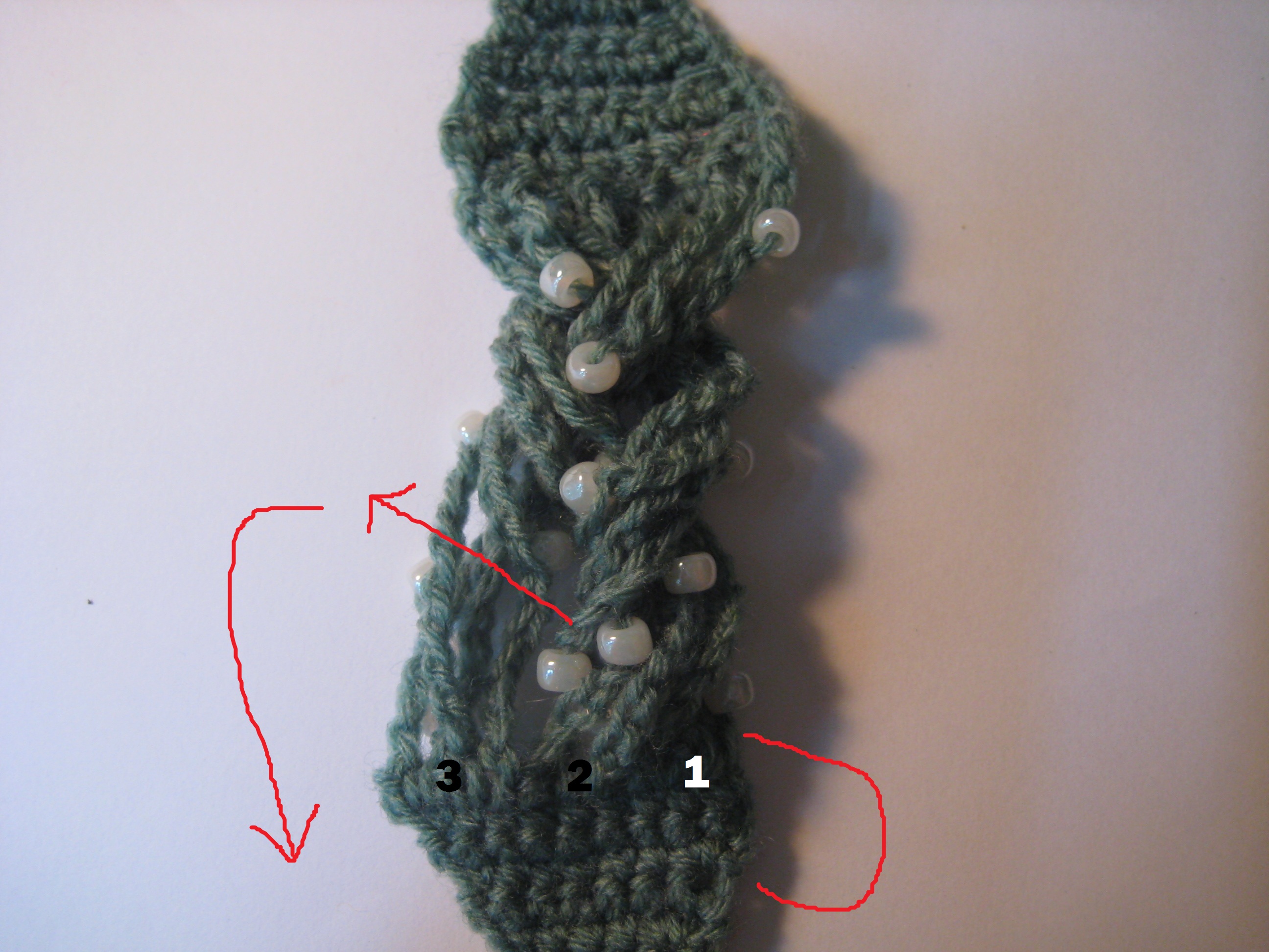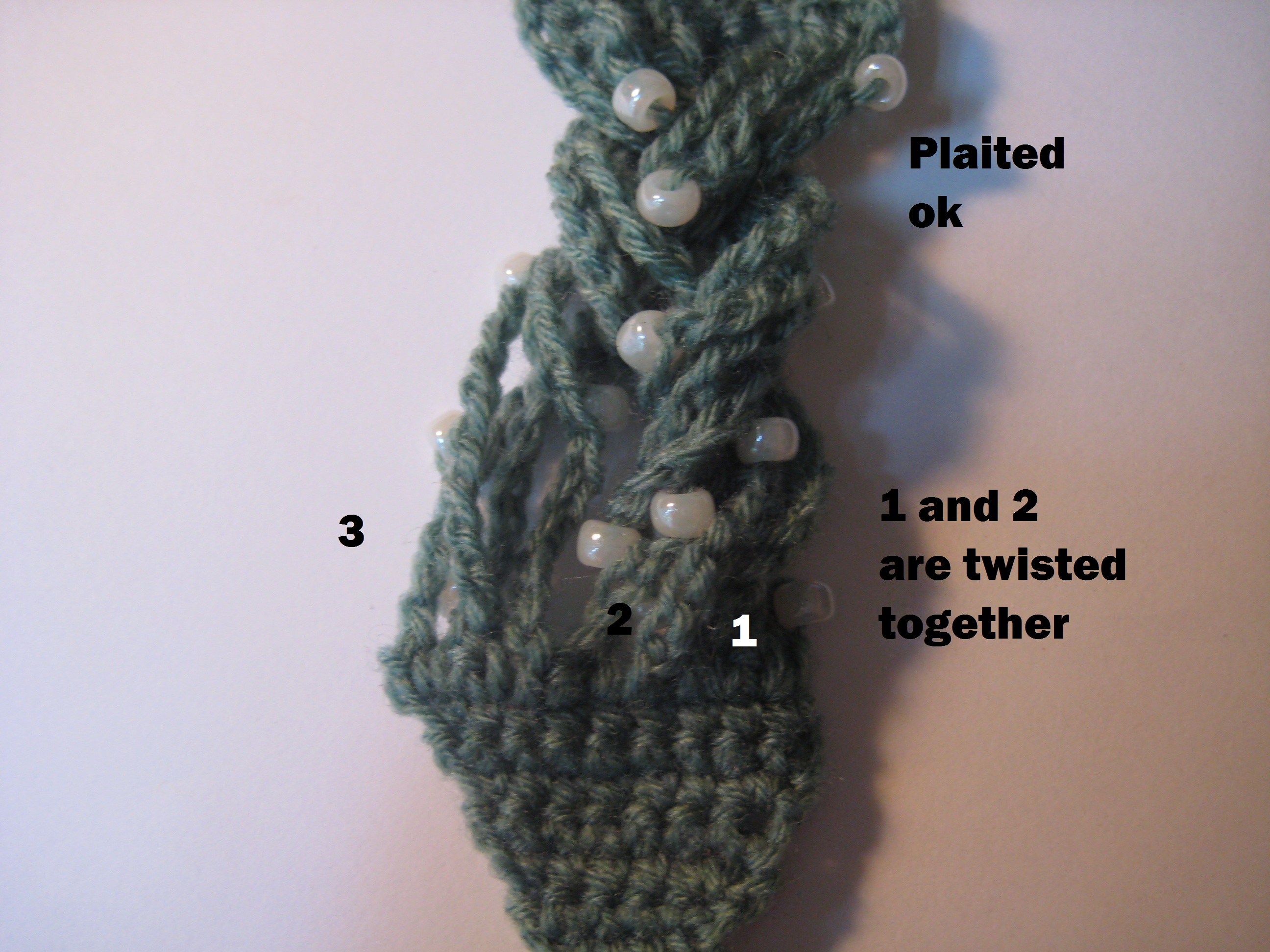 I’ve been asked how to plait this bracelet (pattern here) once it has been finished with the strands all straight. This is a lot easier to explain using pictures, so here’s how I did it: