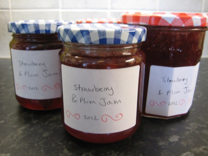 Anyway, plug over! I have been making my own jams and chutneys ever since and have made plum and blueberry jam a few times. Well this year it was time for a change, and I happened to have some strawberries in when my in-laws popped over with a big bag of plums, so thought it was worth trying this combination.