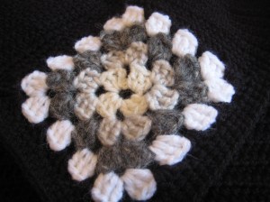Repeat rows 1-2 until 12 sts remain (for my square this was 14 rows total).