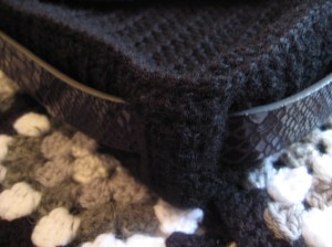When I was making the scarf I accidentally made too many squares. Obviously I need to work on my counting skills! As you may have realised by now I hate letting things go to waste, so I finally came up with a way of using up that extra square. I turned it into the focal point of a new bag!