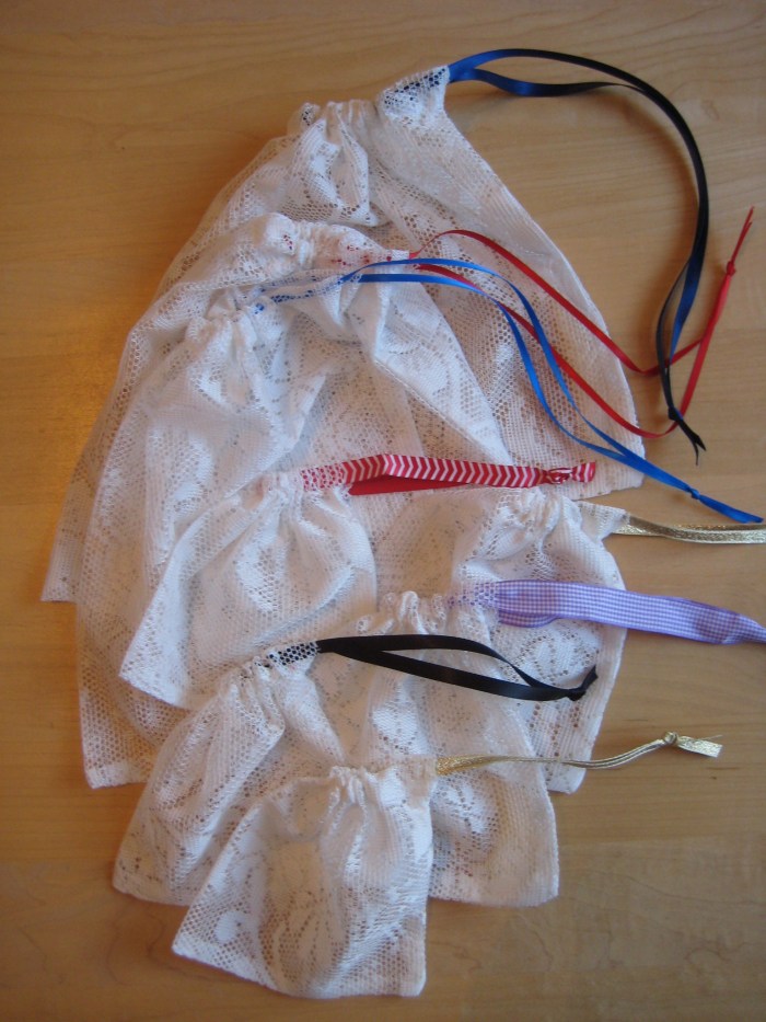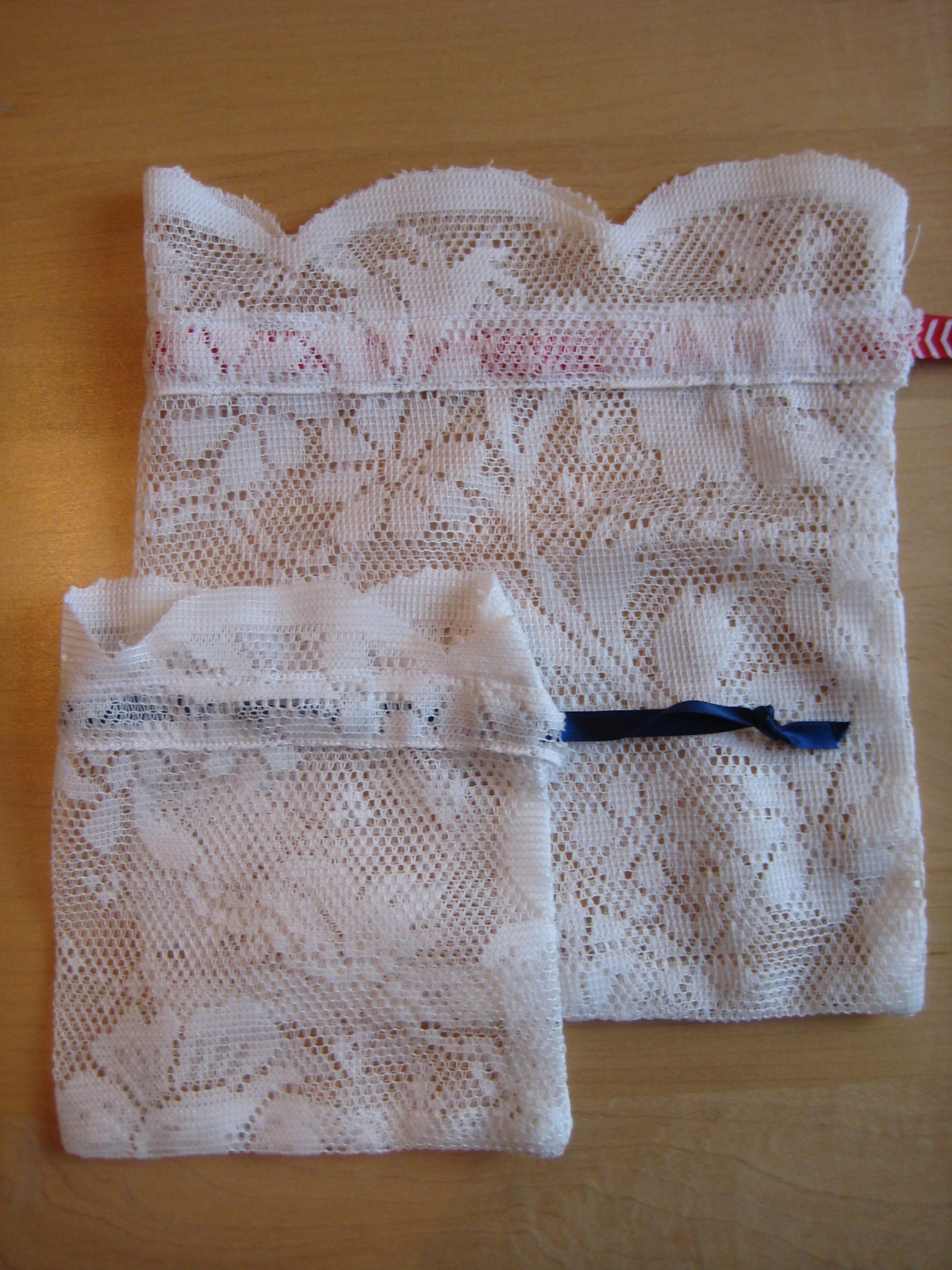 Making drawstring bags is pretty easy- especially with a non-fraying material like this lace because I haven’t had to “finish” any of the seams.