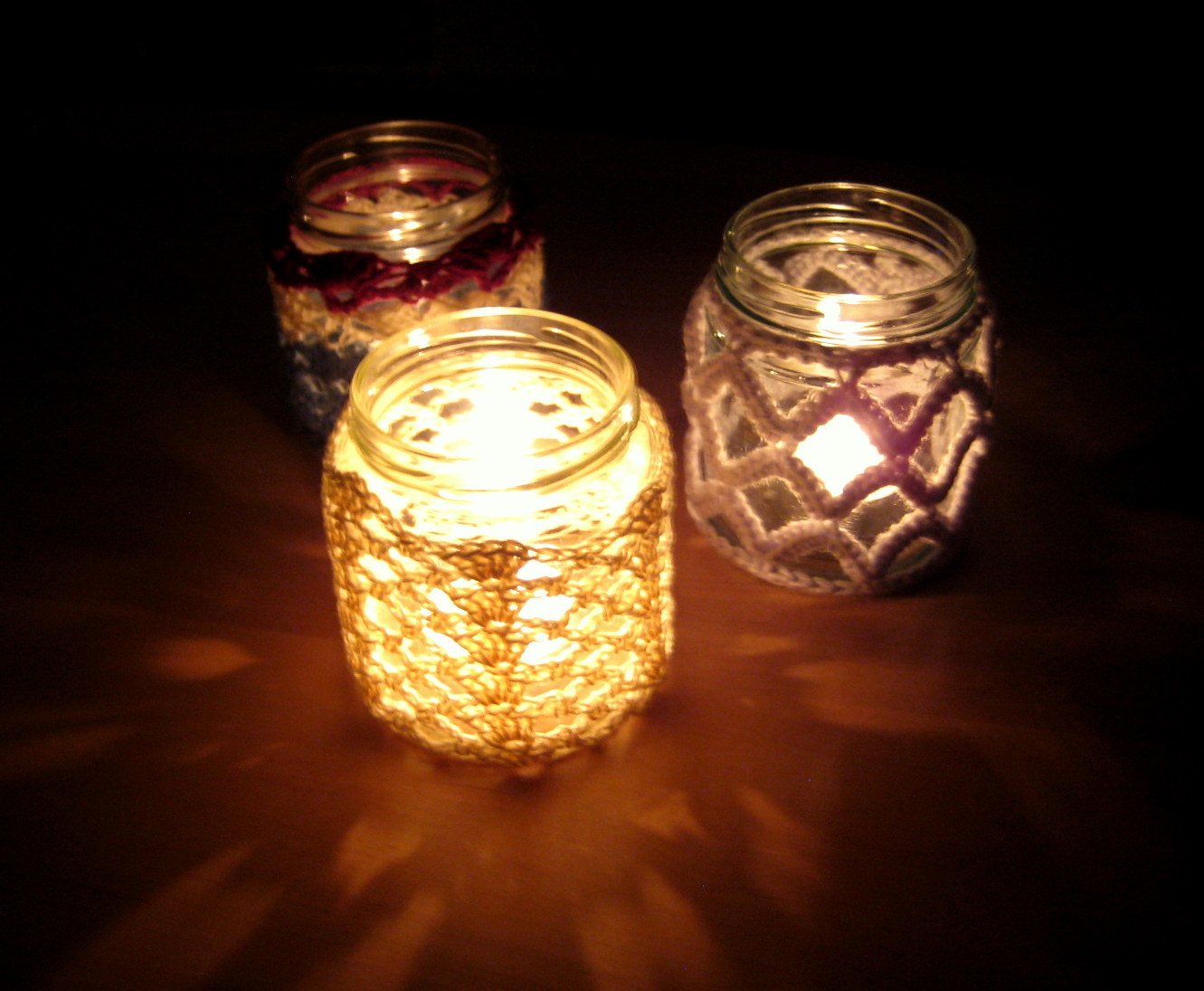 This variation on a jar cover is a lot more open than the others, and lets lots of candle light through… it is also the one my husband likes the most, I guess being less lacy makes it more “man-friendly”! Which of these 3 jar covers is your favourite?