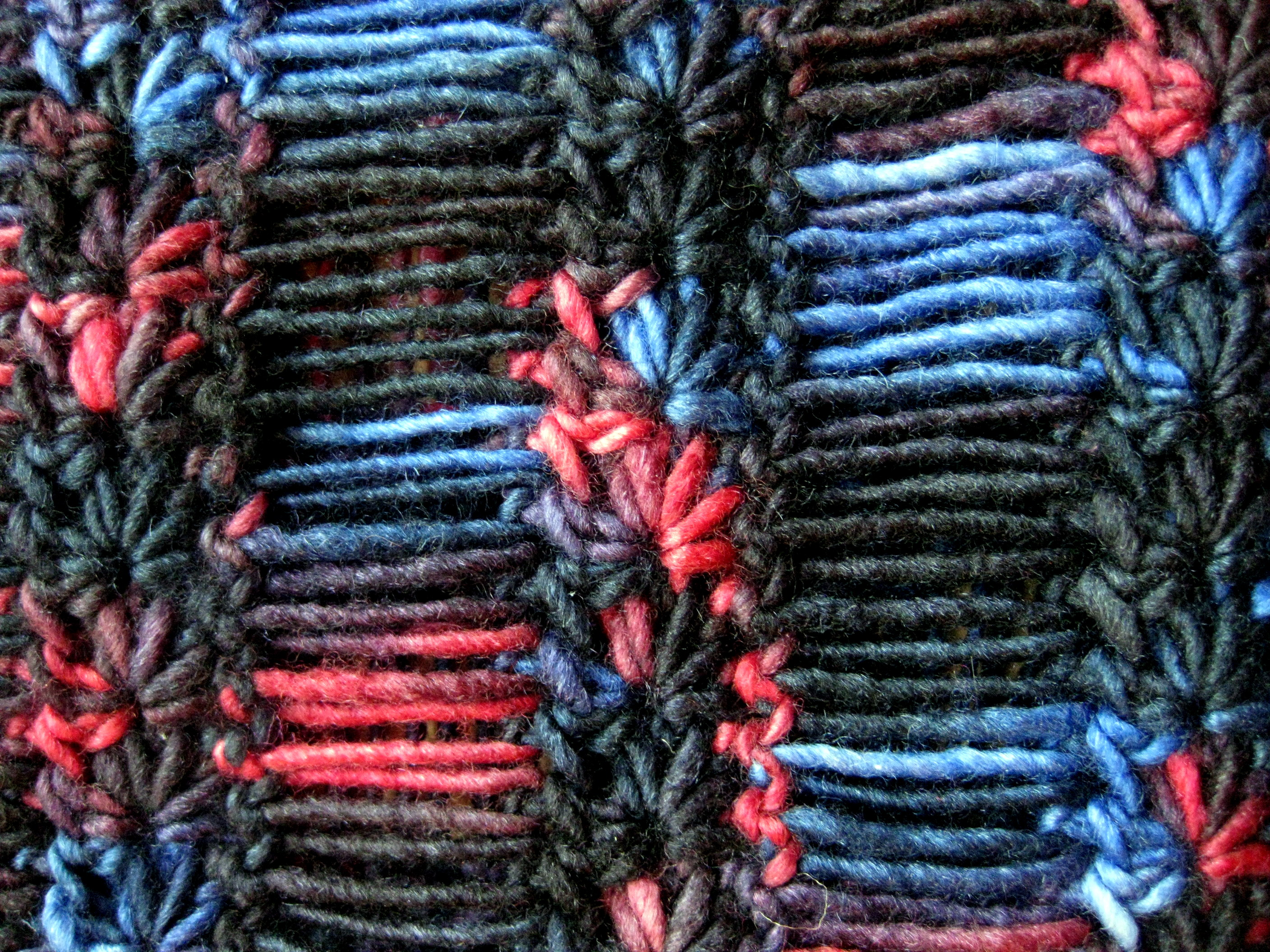 This project is finally finished after having restarted it several times. I am really happy with the result though so it was worth persevering! The final pattern is actually very simple and quick to work up thanks to rows of broomstick lace.