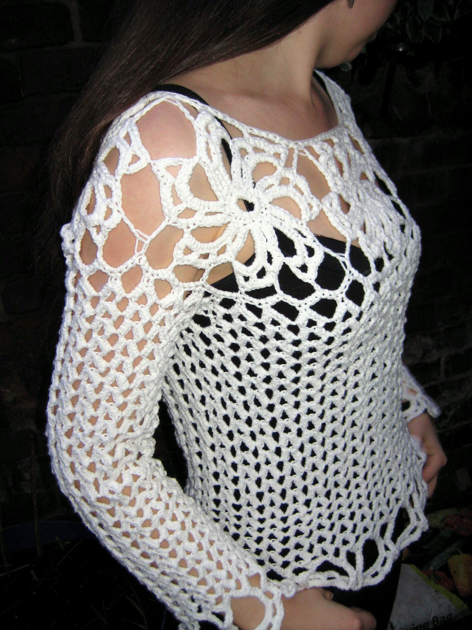 I actually found it easier than I expected it to be. The pattern starts by making the flower motifs, which are then crocheted together. The pattern is then worked from the yoke down.