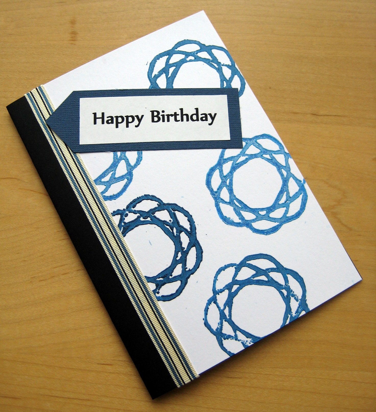 Here are the cards I made for my mum and brother, made just in time and posted first class! Often I think cards for men can be difficult – if they aren’t into fishing and fast cars that is. My bro writes music, but there are only so many times you can stick a picture of a guitar on a card before it gets predictable! So this year I took inspiration from a simple Spirograph pattern and made a linocut especially for this card. I printed a few extra sheets of paper while I was at it so that should do a few more cards besides this one!