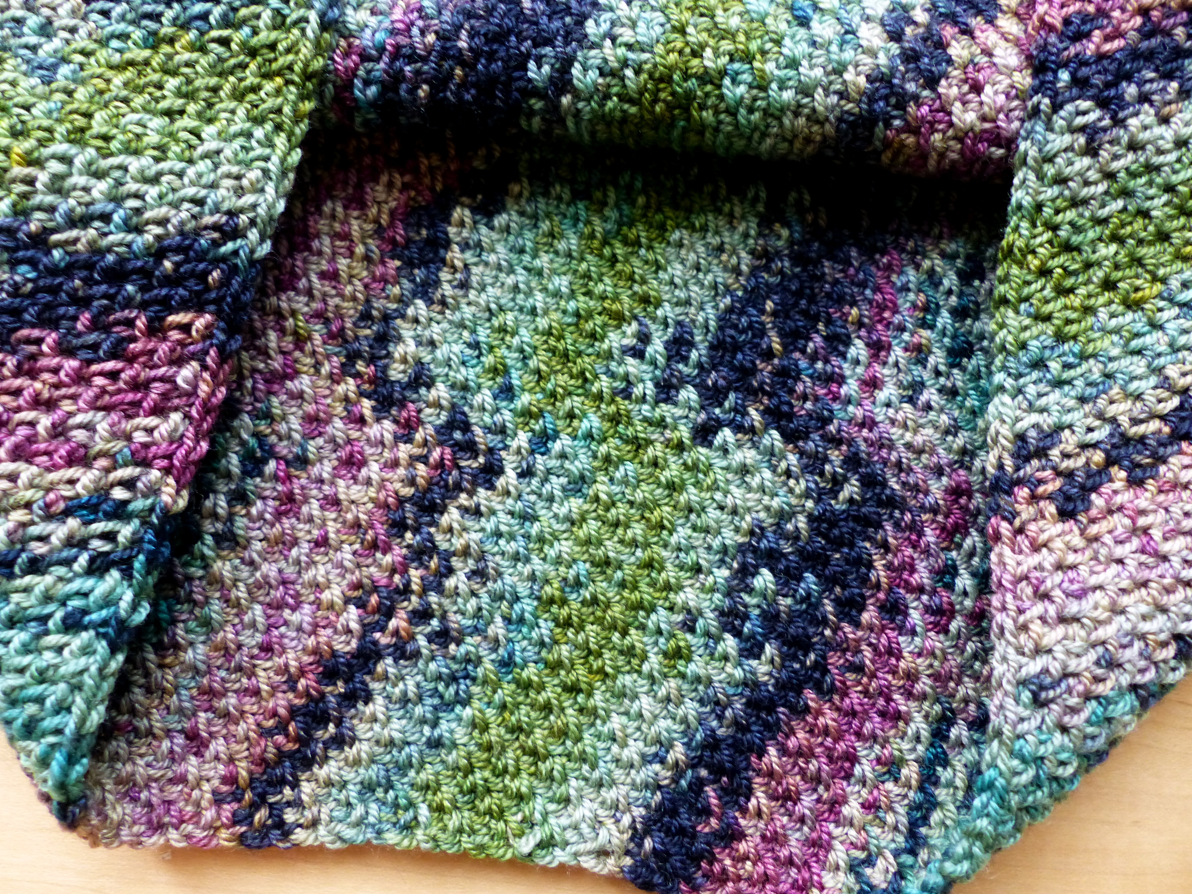 I do love colour and so variegated yarns are often very appealing. However, I think that sometimes short colour changes and vivid colours lose a lot of impact when used in crochet. More thoughts on handling this on my blog about colour here.