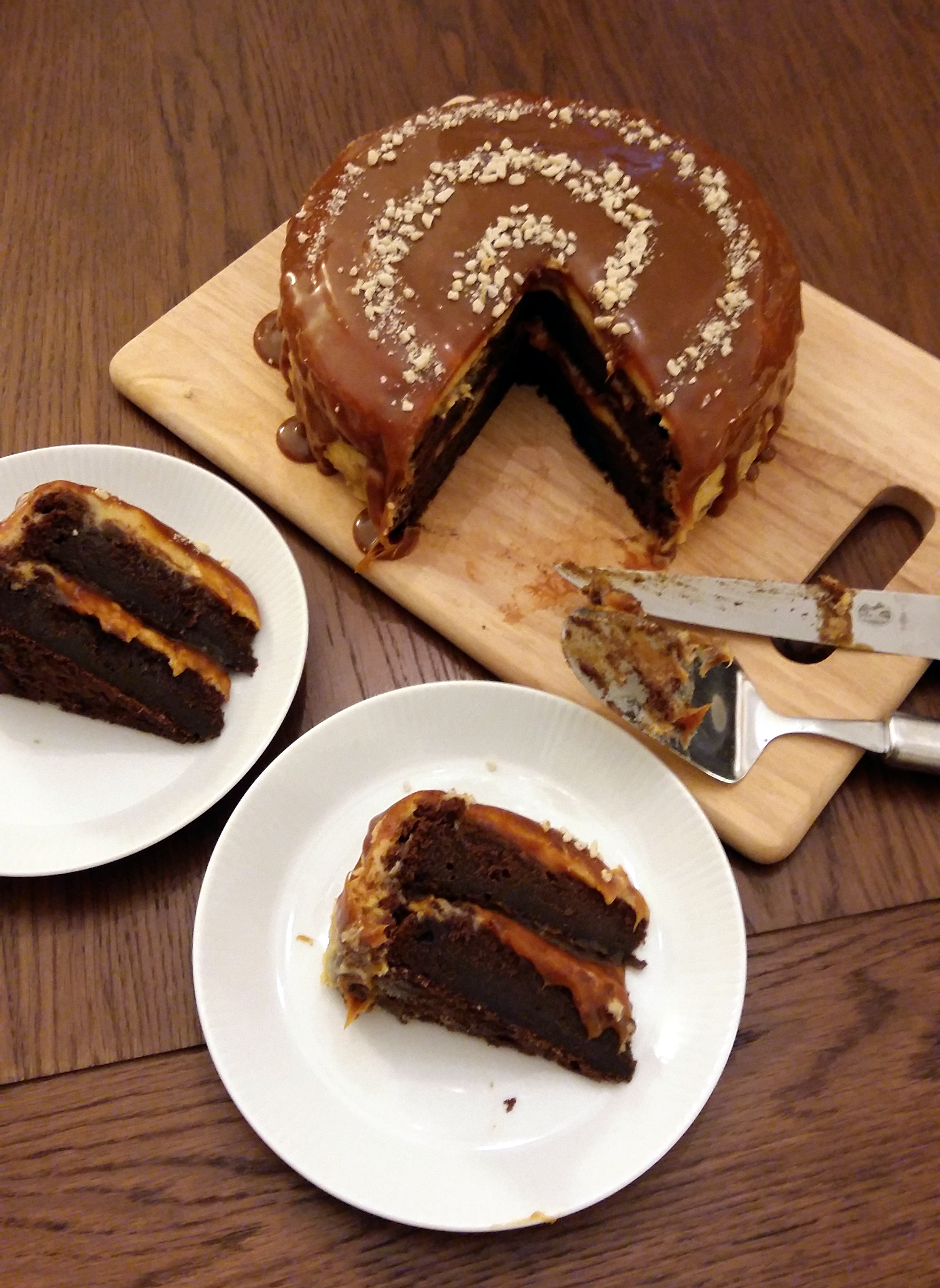 As you can tell he is pretty easy to please, but of course I wanted to make something special for him. Well I have pinned a few chocolate and whiskey cake recipes with him in mind so that seemed like a good start and putting “chocolate and whiskey cake” into google threw up this recipe, the resulting cake pictured had 4 layers and looks beautiful, so that’s what I went with.
