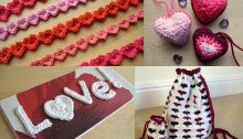 Did you spot the hanging heart in the pictures of my zigzag Christmas stocking?  Well I received a few requests for the pattern, which was flattering because there are a few similar patterns around.  Sorry these aren’t in time for Christmas – but they are in time for Valentine’s Day! (Or you can really use…
